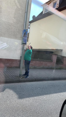 Wie an Laternen mit Genehmigung der örtlichen Behörden oder an Privatstellen.