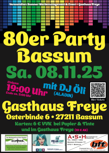 Einmal im Jahr wird im Gasthaus Freye zu den coolsten Hits der 80er Jahre mit DJ Öli (bekannt aus dem Aladin Bremen) ausgelassen gefeiert!
