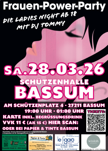 Am 28.03.2026 findet in Bassum die 1.Frauen-Power-Party "Die Ladies Night ab 18" statt!